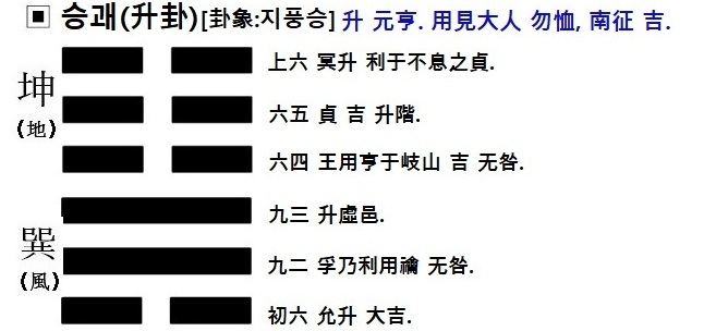 ◎ 46. 승괘(升卦)[卦象:지풍승(地風升)]