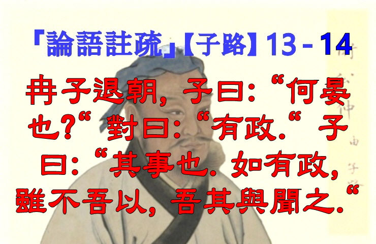 ◆ 13 - 14) 冉子退朝, 子曰: "何晏也?" 對曰: "有政." 子曰: "其事也. 如有政, 雖不吾以, 吾其與聞之."