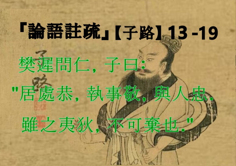 樊遲問仁。子曰:「居處恭,執事敬,與人忠。雖之夷狄,不可棄也。」(包曰:「雖之夷狄, 無禮義之處猶不可棄去而不行。」)