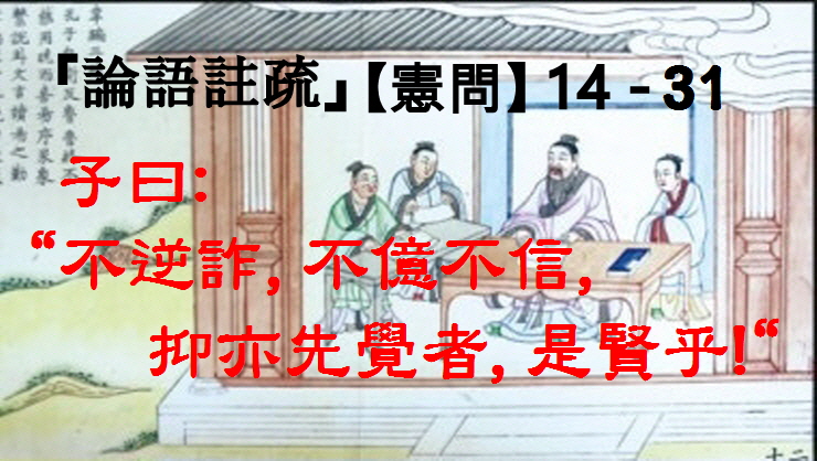 ◆ 14 - 31) 子曰: "不逆詐, 不億不信, 抑亦先覺者, 是賢乎!"